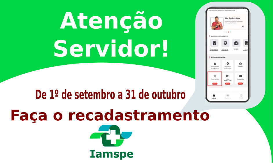 O Instituto de Assistência Médica ao Servidor Público Estadual (IAMSPE) publicou no Diário Oficial do Estado de São Paulo a Resolução Conjunta SGGD e IAMSPE nº 01/2025, que estabelece o recadastramento obrigatório de todos os titulares (ativos e aposentados) e seus beneficiários. O prazo para a atualização cadastral será de 1º de setembro a 31 de outubro de 2025.
