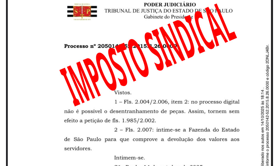 Em decisão proferida nesta terça-feira (14), o Presidente do Tribunal de Justiça de São Paulo (TJSP), desembargador Fernando Antonio Torres Garcia, determinou que a Fazenda do Estado de São Paulo comprove a devolução dos valores do Imposto Sindical cobrados dos antigos ASPs.