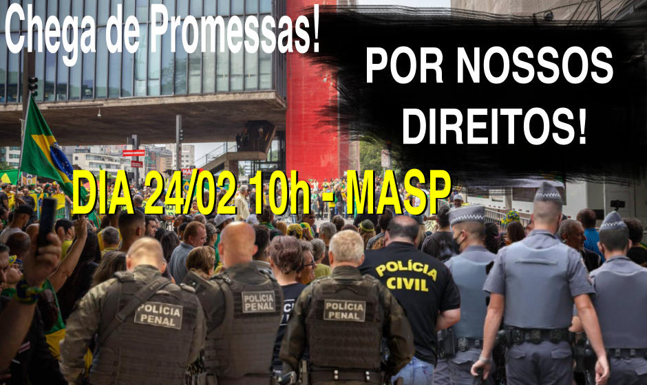 Por isso dia 24 às 10h cada Policial Penal, Civil e da reserva da PM tem um compromisso, comparecer em frente ao MASP e mostrar a aqueles que pagam nossos salários e que confiam sua segurança a nossa atuação todas as promessas não cumpridas do Governador Tarcísio de Freitas.