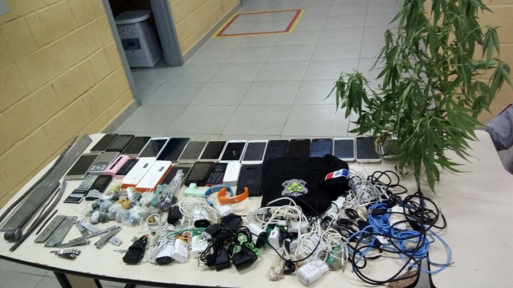 Agentes penitenciários do Presídio de Segurança Máxima (PSM2) identificaram um pé de maconha plantado numa átrea externa perto de onde ficam os presos durante revista realizada na última sexta–feira, 01/12. Segundo informações do Sindicato Agentes Penitenciários (Sindapen), essa revista foi a primeira realizada após a mudança de gestão na unidade prisional. 22 aparelhos de celulares, carregadores, cinco baterias externas e uma balançade precisão também foram encontrados.
